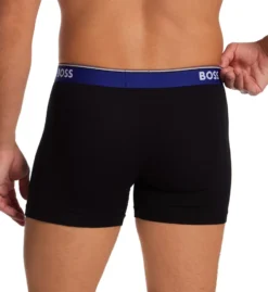 Mid-rise boxer brief features flyless contour pouch and contrast logo waistband. Solid colored knit is made cotton and elastane. Waistband is made of polyamide, polyester, and elastane.