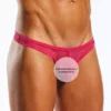 - Narrow waistband for invisibility under clothing with the stripes and the Cocksox label at center.
