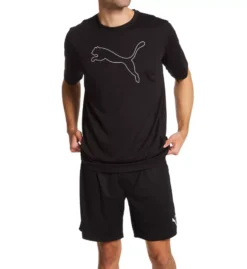 Short-sleeved tee has moisture wicking and allover ventilation for a cool, breathable style that keeps you feeling dry. Made of knit polyester.
