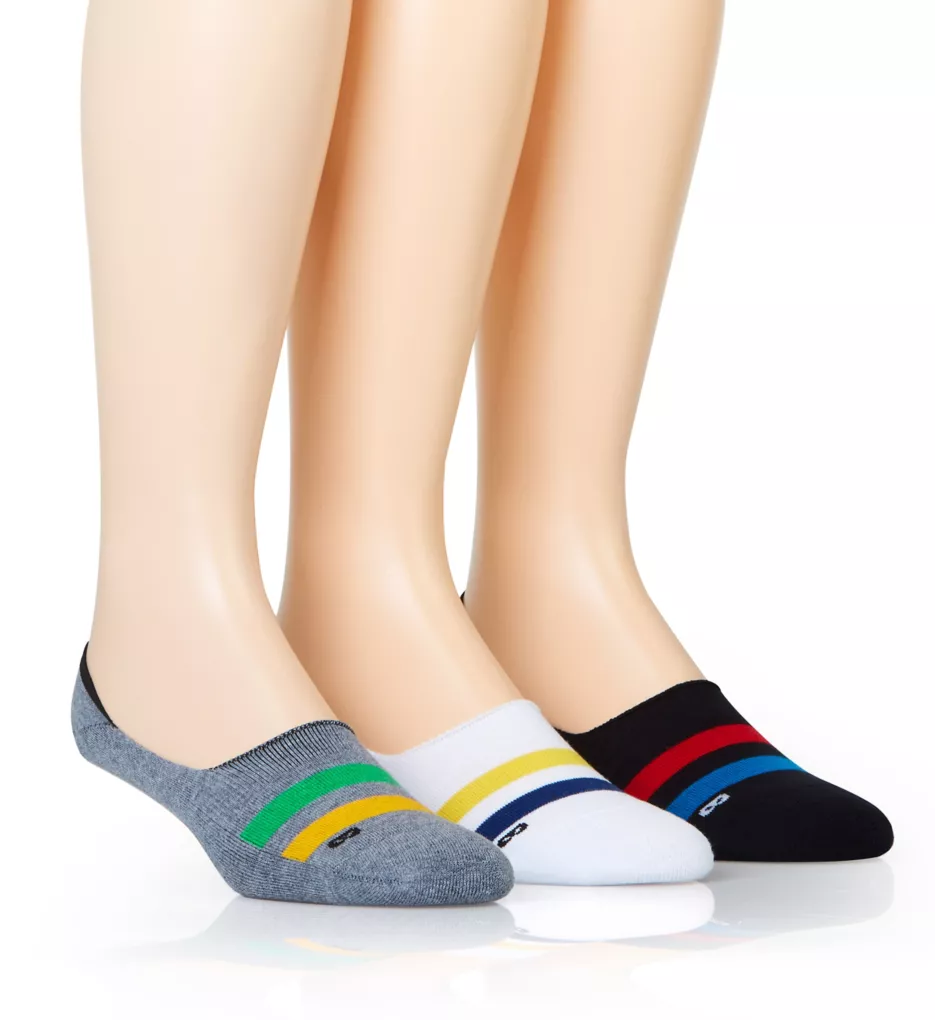 These handsome no show socks feature striped details above reinforced toe seams. Comes in a 3-pack. Made of combed cotton, polyester, spandex, other fiber, and natural latex rubber.
