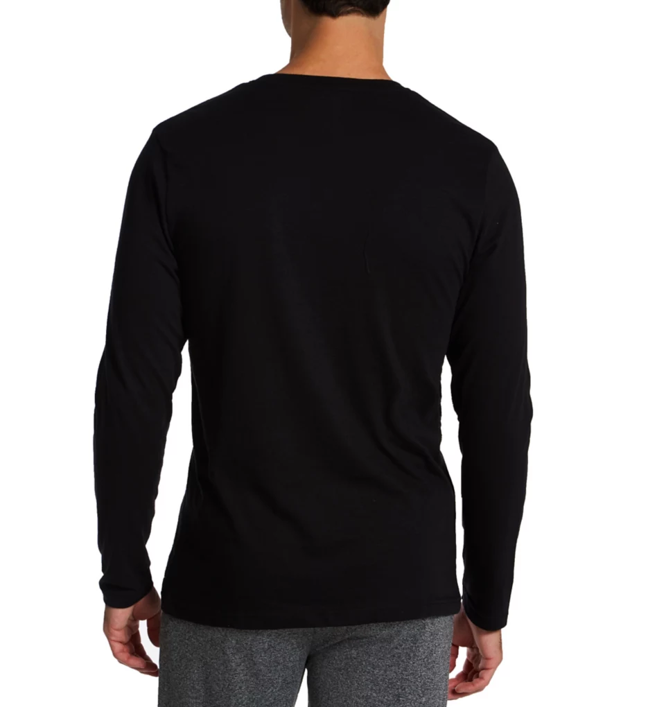 - Crewneck with narrow ribbed band double-stitched into tee to help it lie flat.