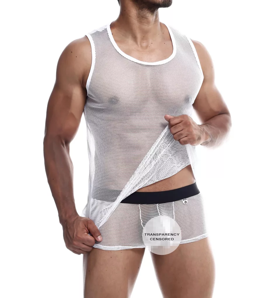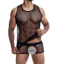 Sheer mesh tank adds a sexy look that lets you show off. Made of nylon and spandex.