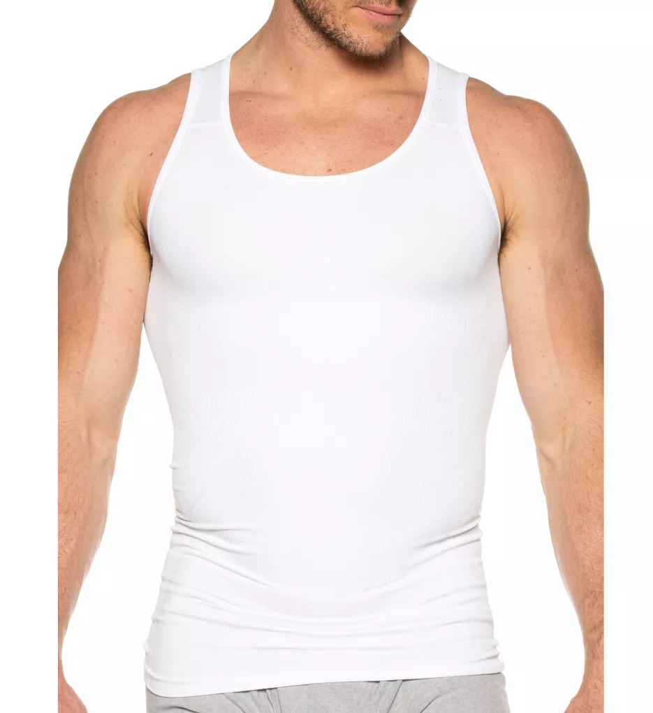 Wear this shaping tank under your shirt for a more toned and trim look. Made of nylon and spandex.