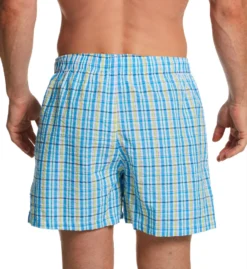 - Boxer comes in either plaid pattern or tropical print.