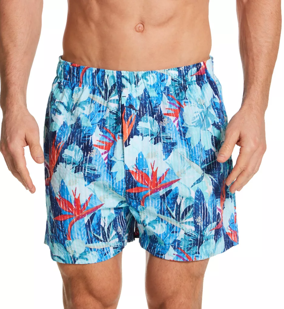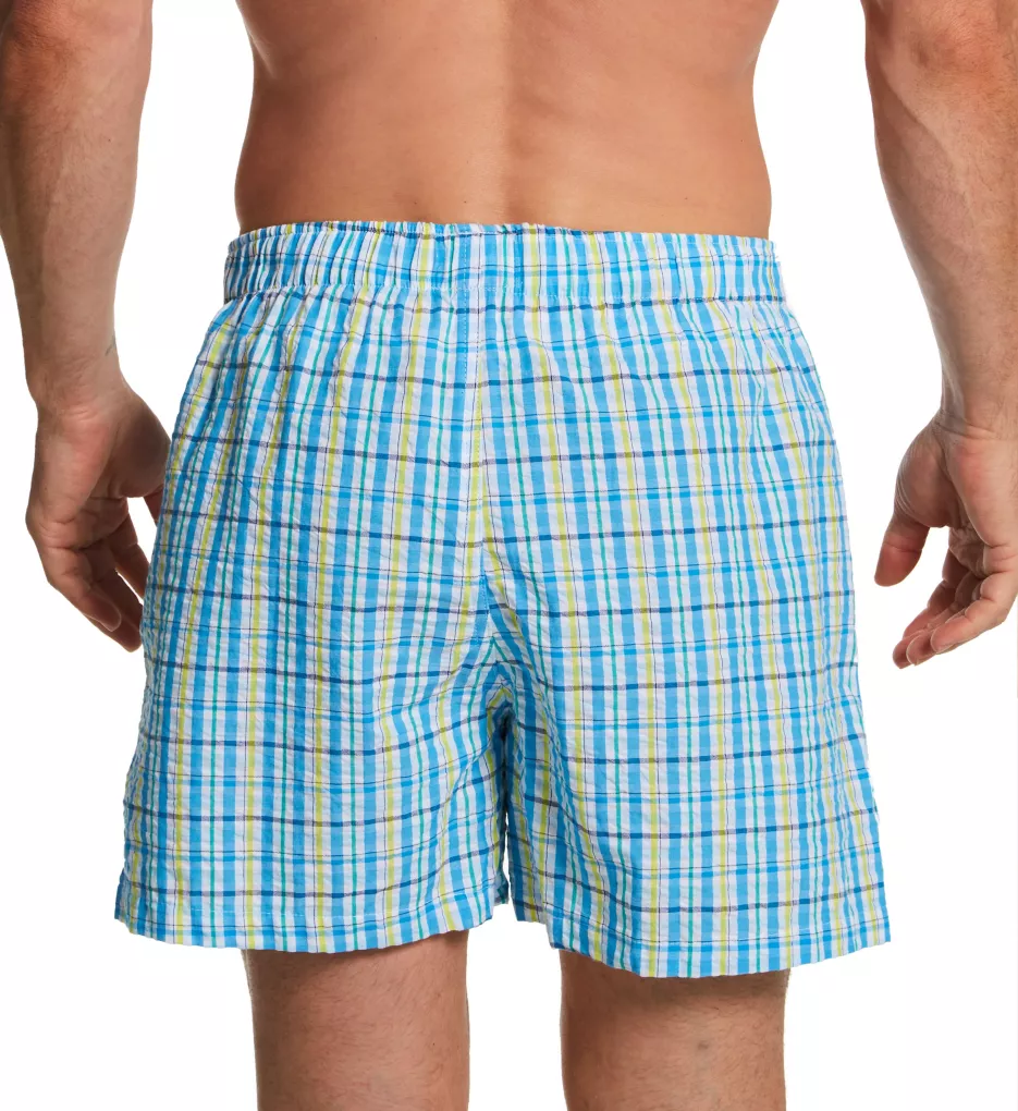 Open fly boxer shows off fun prints on seersucker fabric. Made of woven cotton.