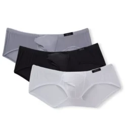 Extra sexy, extra low-cut trunk has incredible stretch so that it molds to your body. Now in a three pack to give you three different colors! Made of knit nylon and spandex.