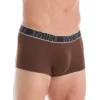 Sheer at the rear brief with bikini-cut leg openings and sheer-sided pouch. Made of polyamide (nylon) with spandex for stretch comfort.