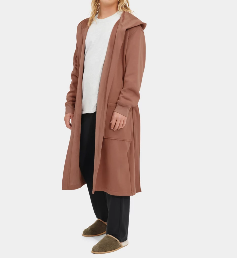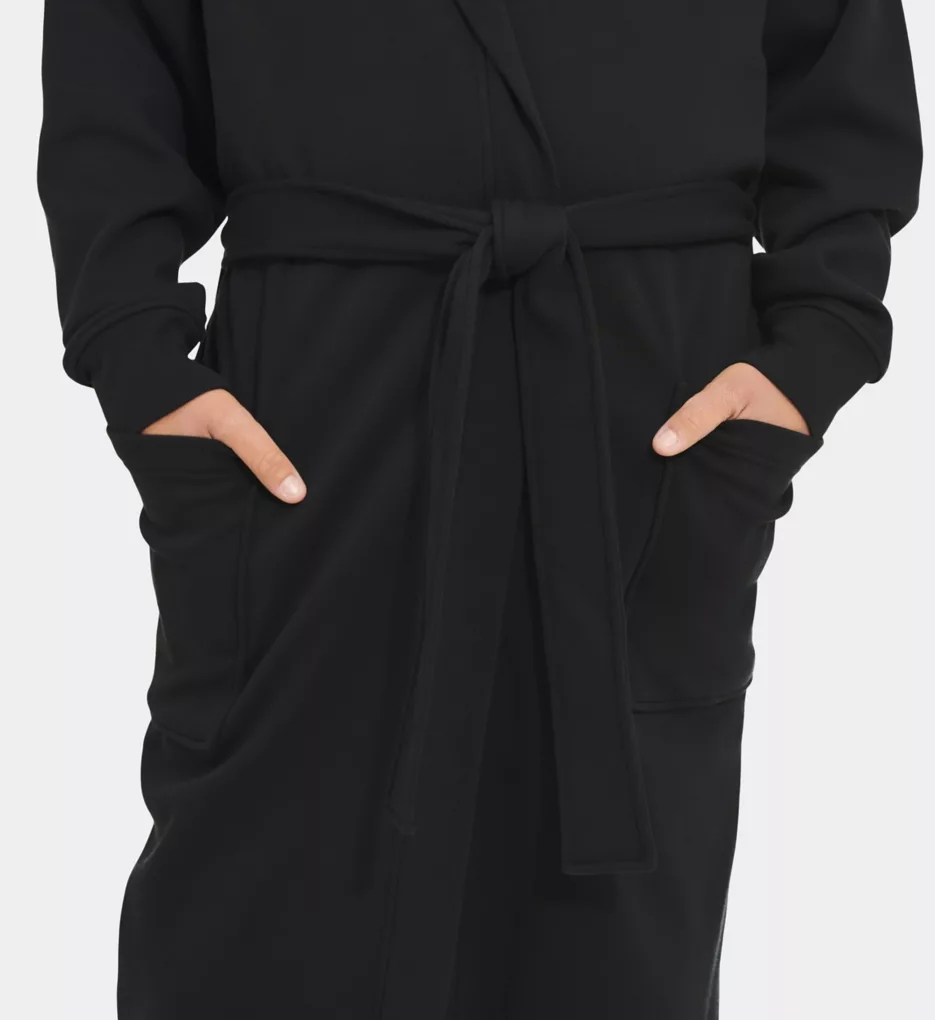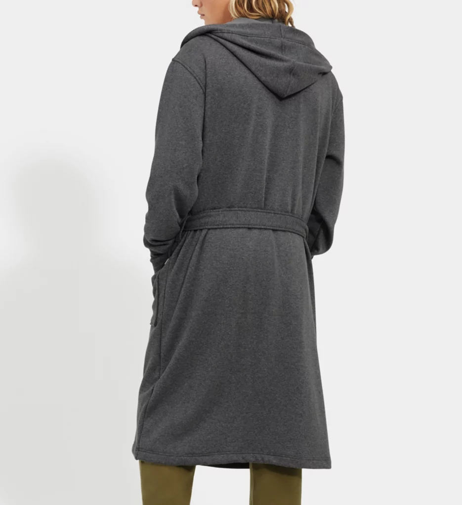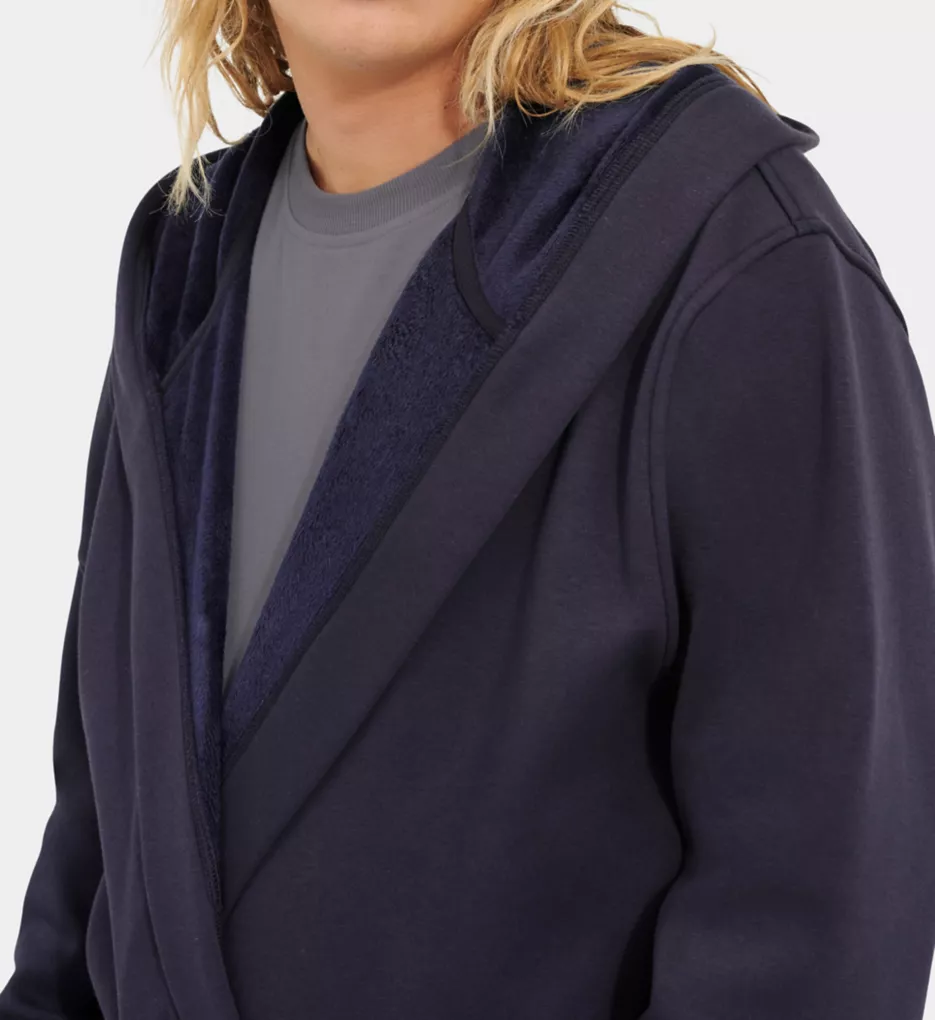 - Fleece pile covers interior of robe and hood for extra coziness.