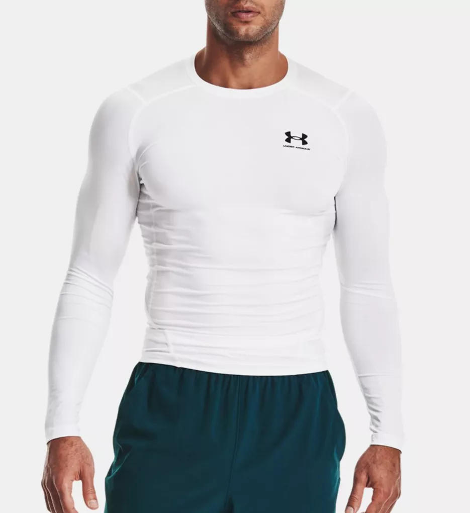 - HeatGear has a light feel and removes sweat from fabric with moisture-wicking.