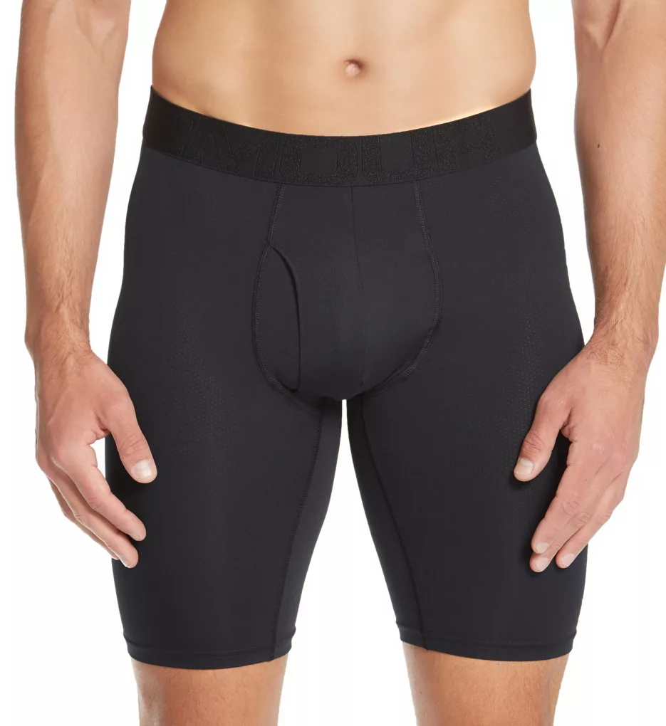 - Legs are longer for more wicking coverage, and have turned-and-stitched hems to comfortably hold in place.