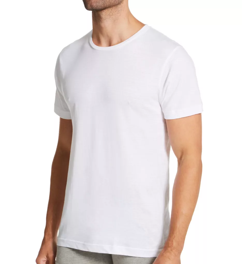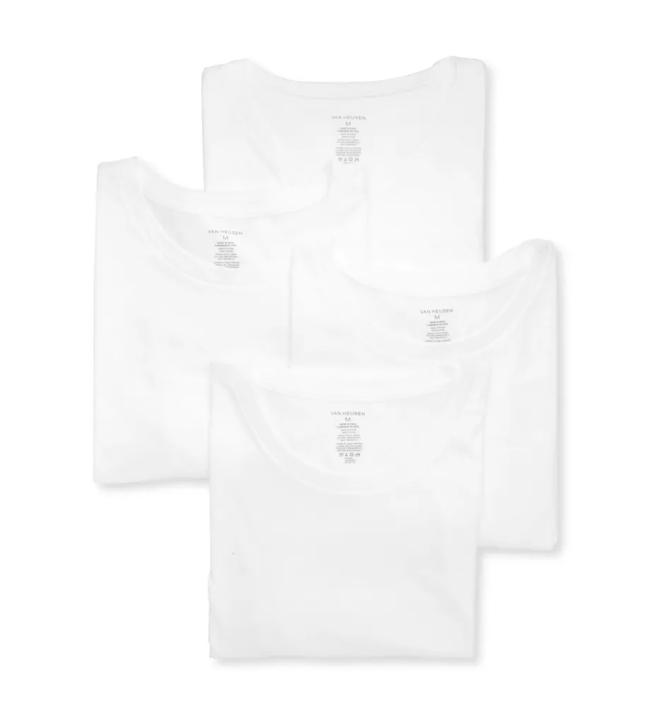 This classic fit t-shirt has taped inside shoulder seams, short sleeves, and tuck-in length sides. Comes in a pack of four. Made of knit cotton.