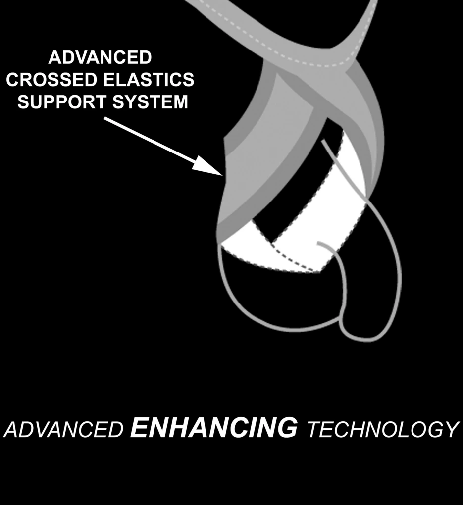 - Criss-crossed, solid fabric panels surround the mesh pouch and provide the support for an improved profile.