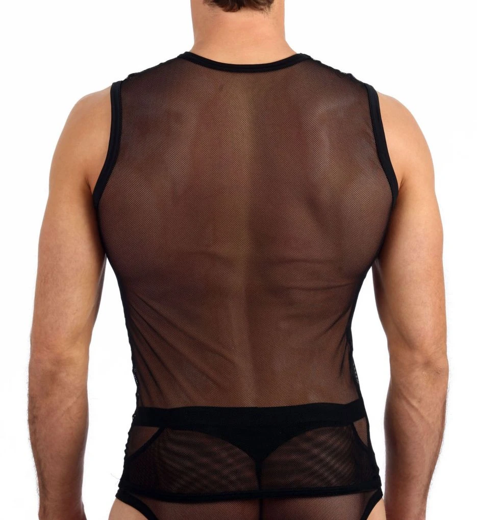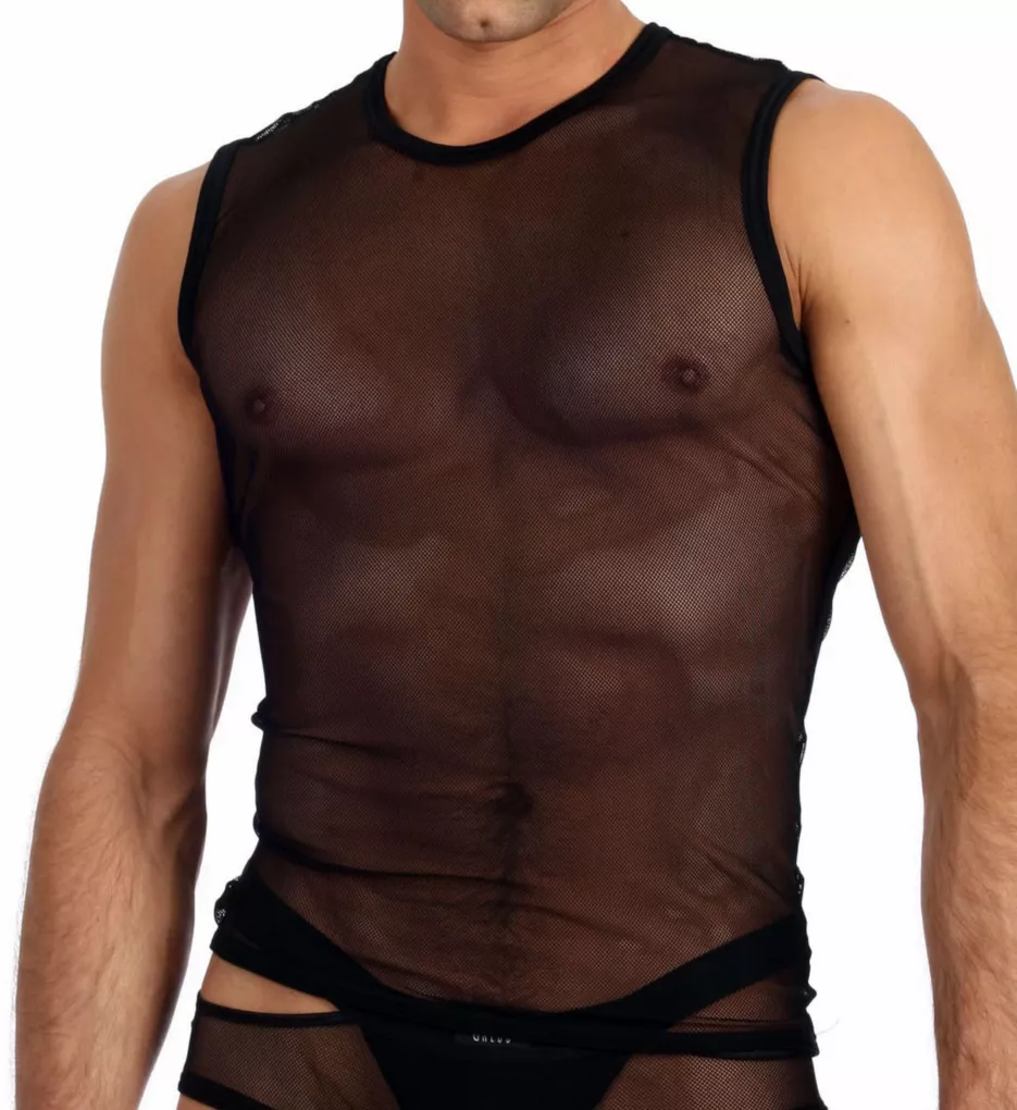 Maximize your look with this sheer muscle shirt. Made of nylon and spandex.